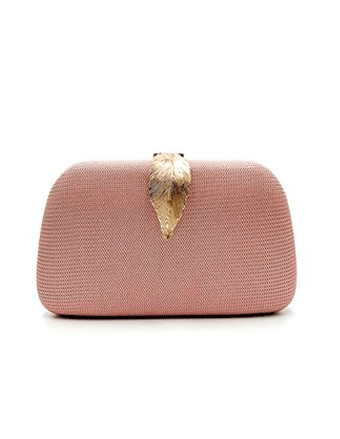 Sac de fête rose avec tissu brillant et fermoir décoratif en forme de feuille. Élégant, compact et parfait pour compléter le look de vos invités.