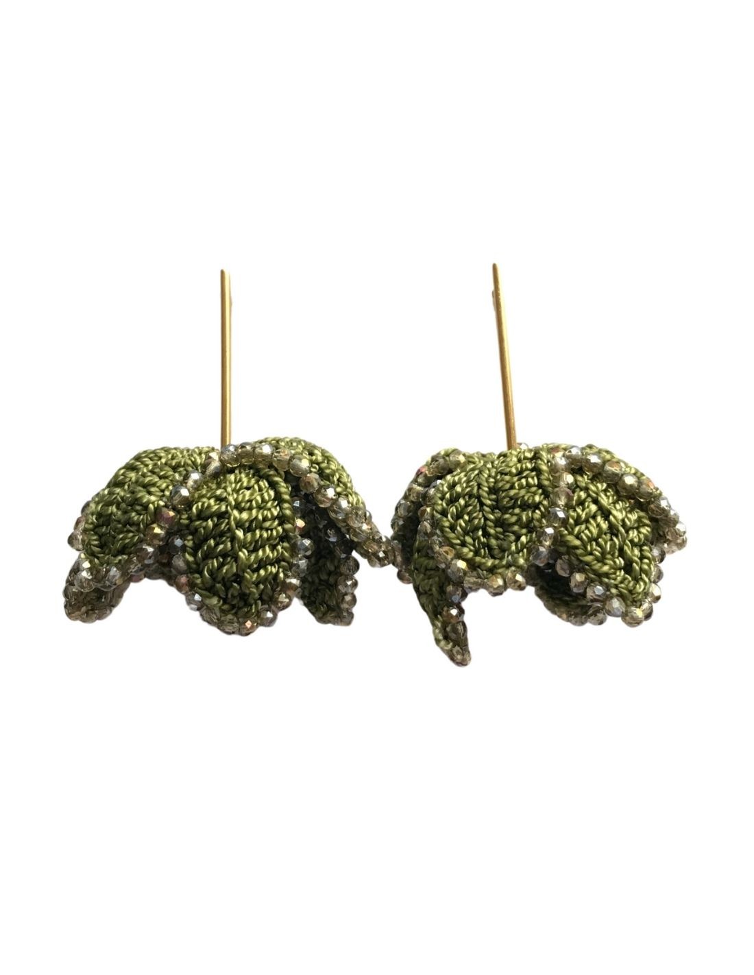 Boucles d'oreilles florales en crochet avec cristaux et métal doré