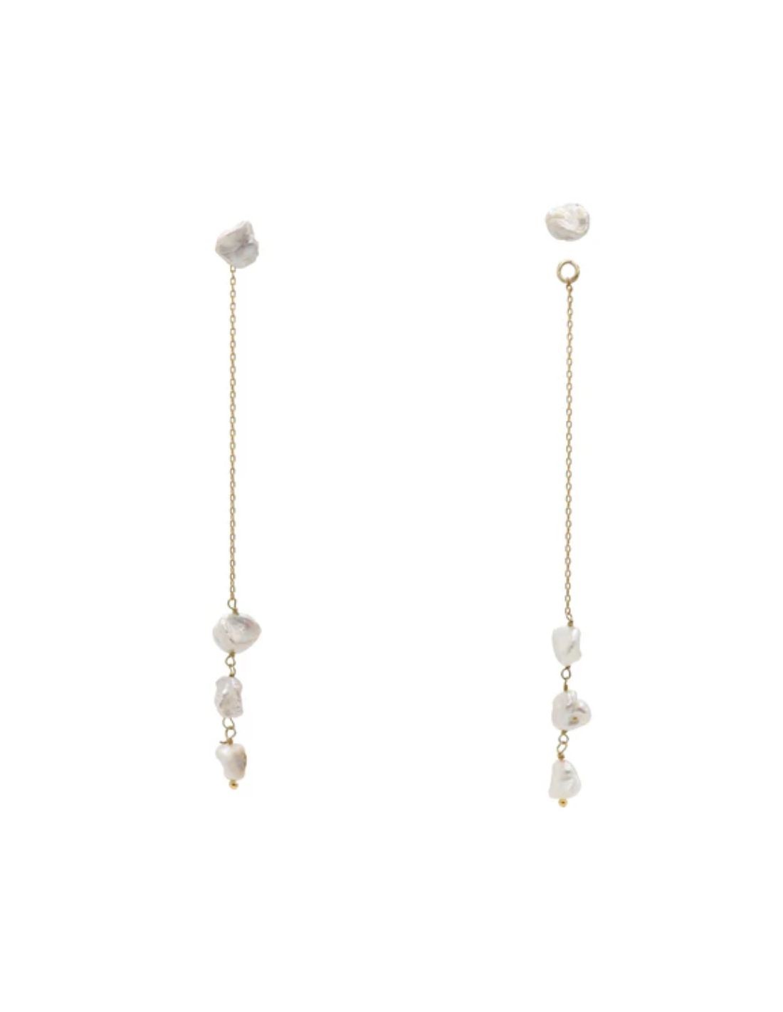 Boucles d'oreilles avec chaîne fine et perles irrégulières