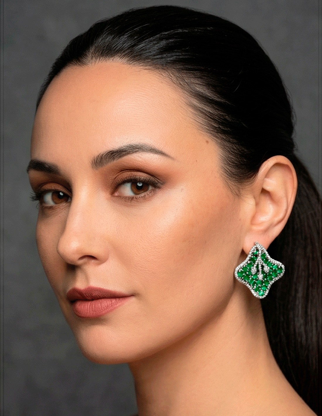 Boucles d'oreilles vert émeraude avec cristaux carrés et pierres semi-précieuses