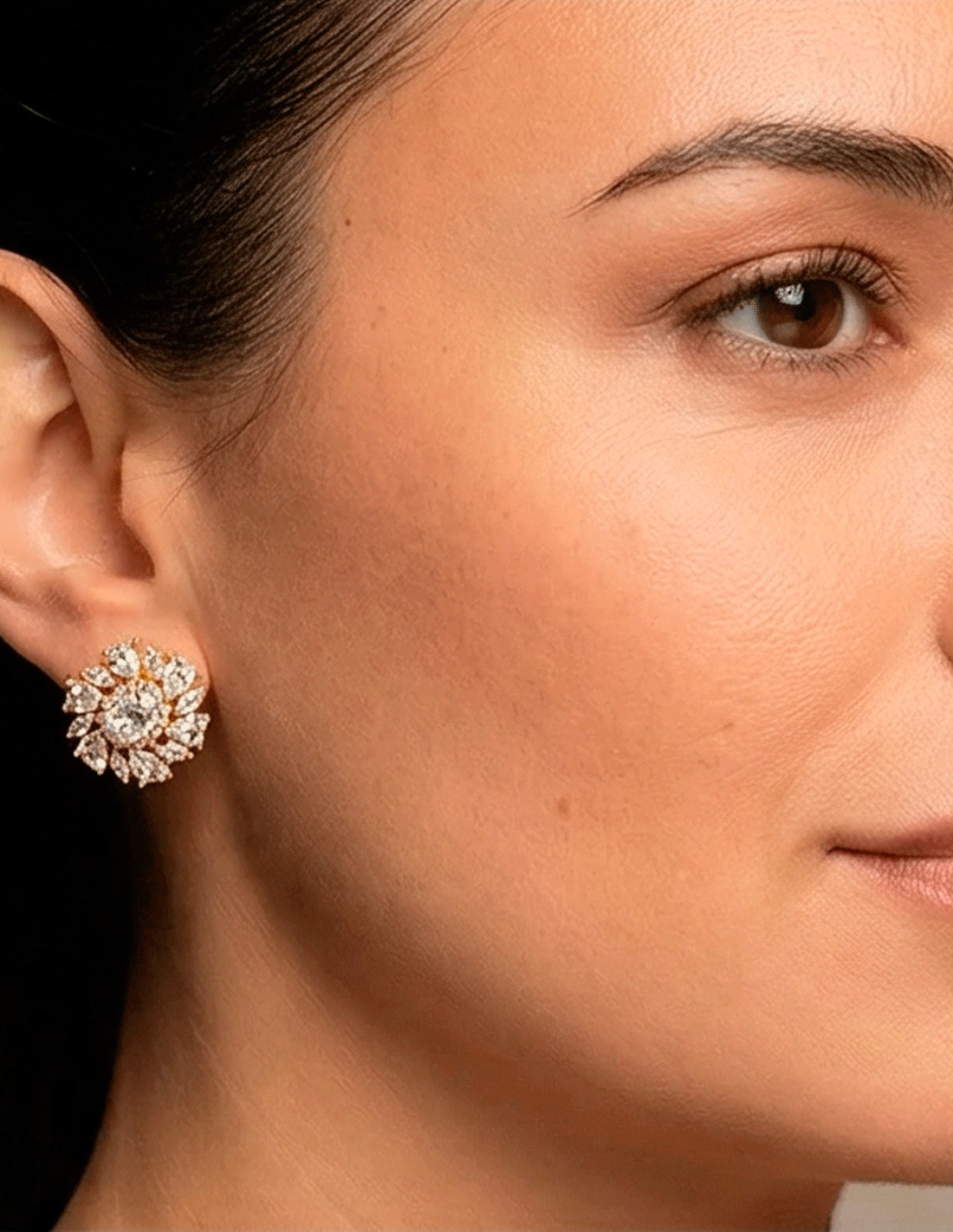 Boucles d'oreilles en cristal naturel plaqué or 48 carats avec finition plaquée rhodium