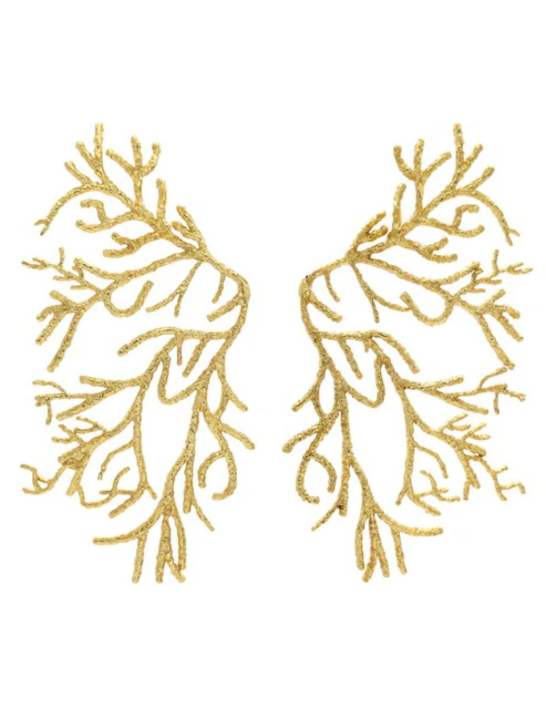 Le nom de ce modèle fait référence à l'espèce de corail Acropora Palmata, reflétant la délicatesse et la beauté de la vie marine dans chaque détail de la pièce. Chaque boucle d'oreille a été fabriquée à la main, ce qui garantit que chaque modèle est différent et exclusif. La finition en laiton plaqué or offre un éclat chaud et durable qui met en valeur toutes les tenues.