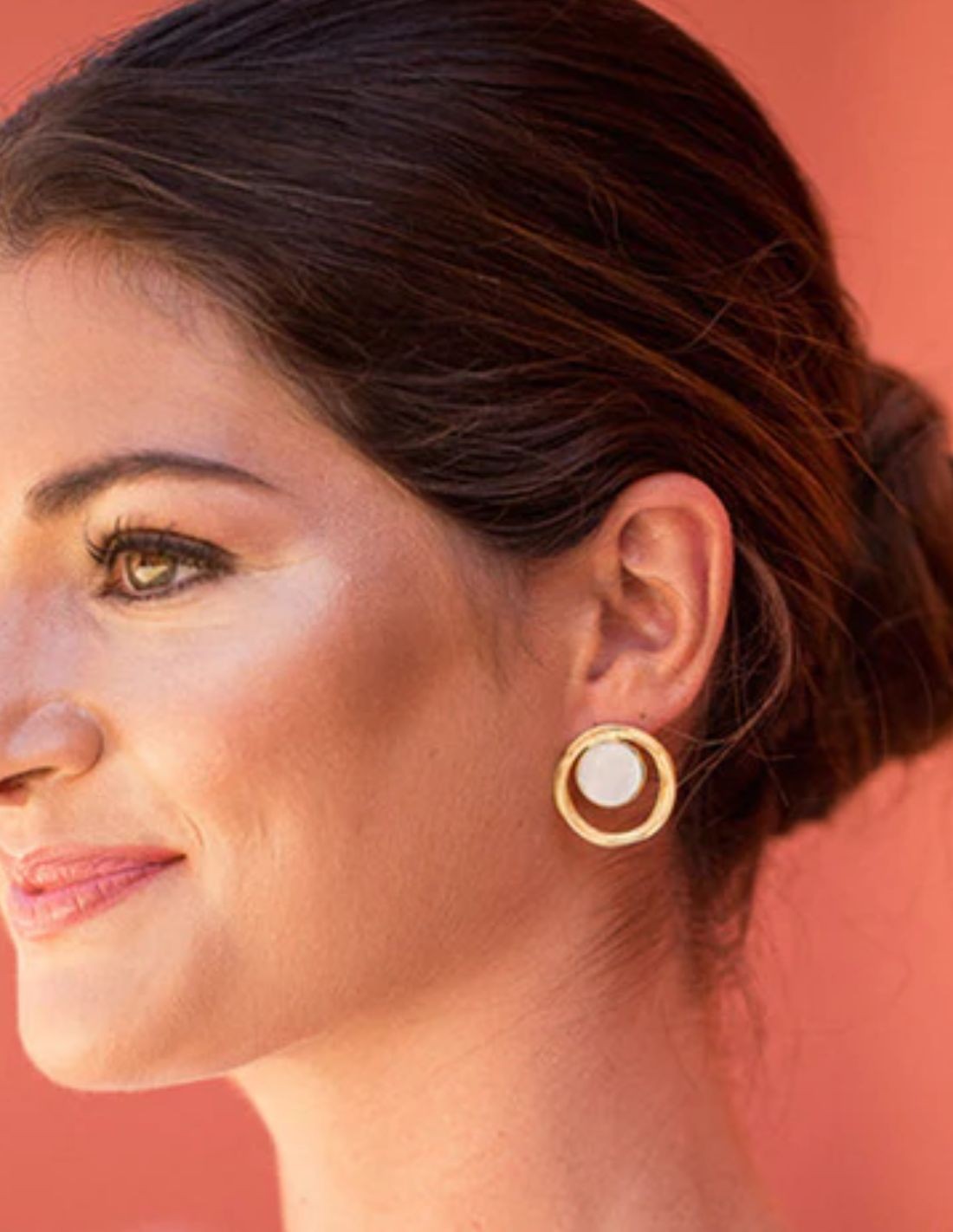 Boucles d'oreilles avec deux cercles, pierre intérieure et cercle extérieur texturé, discrètes, élégantes et fabriquées à la main, idéales pour les mariées ou les looks romantiques.