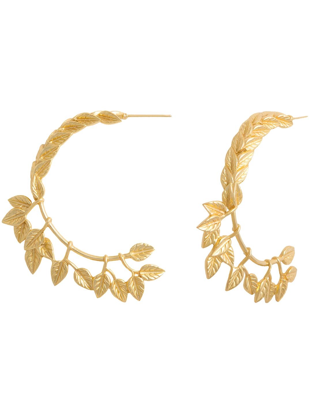 Ces boucles d'oreilles inspirées de feuilles de laurier confèrent une élégance intemporelle à n'importe quel look. Leur style d'inspiration hellénique est mis en valeur par la délicatesse des feuilles sculptées à la main, qui sont disposées en forme de branche autour de l'anneau, créant ainsi un effet très spécial et plein de détails.
