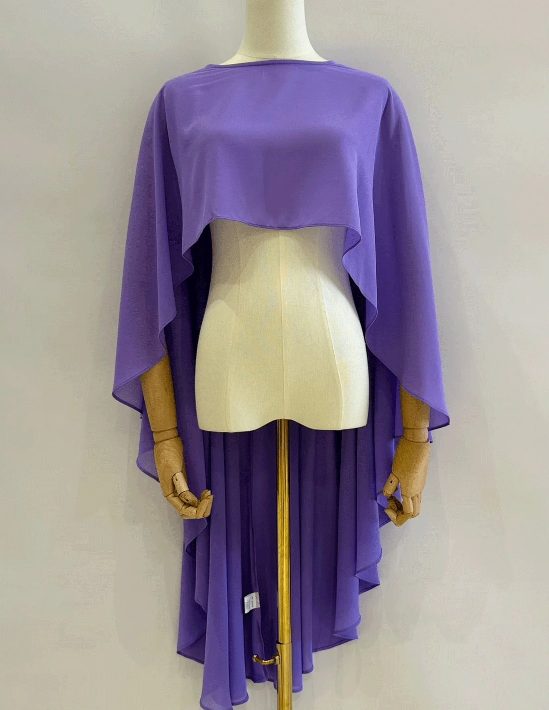 Découvrez notre unique cape invitée en mousseline de soie asymétrique multi-positions, disponible dans une large gamme de couleurs.