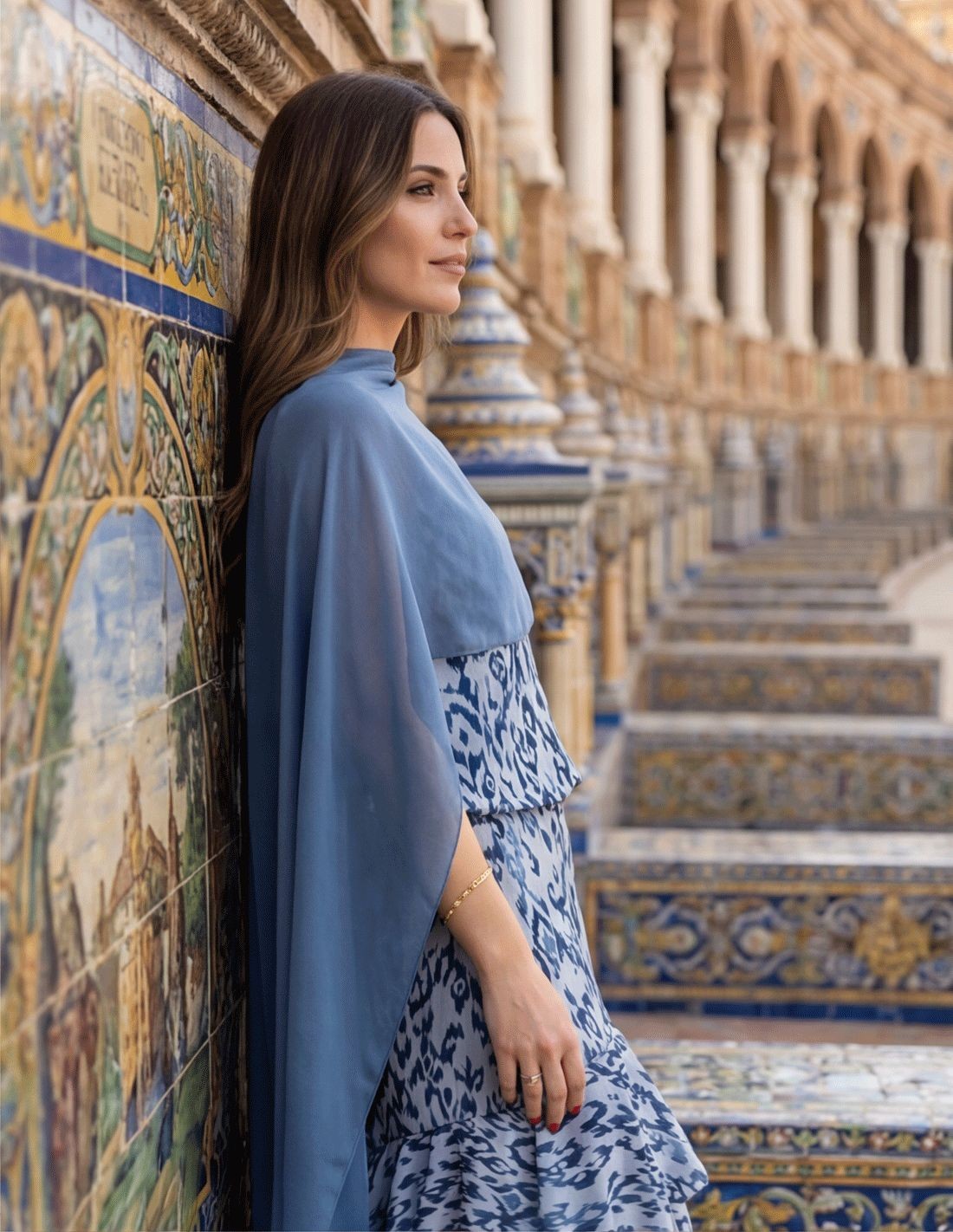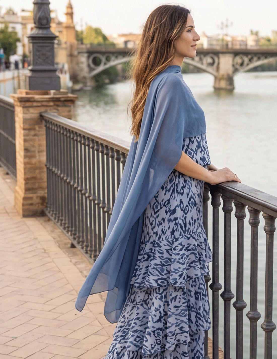 Capa de gasa azul para invitada