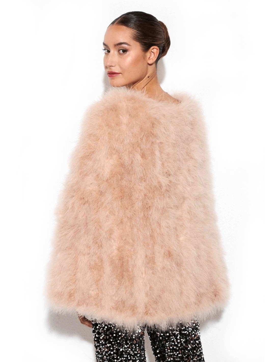 Découvrez l'élégance intemporelle de notre cape invitée en plumes d'autruche.