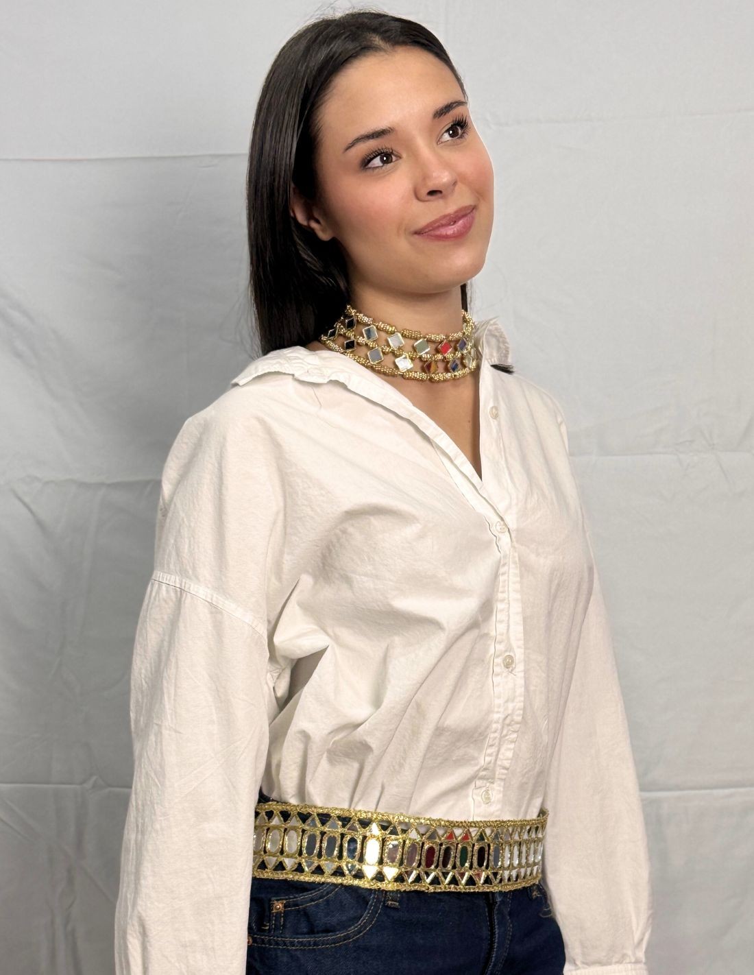 Transformez n'importe quel look avec une touche de savoir-faire et de style grâce à notre large ceinture miroir réglable. Conçue pour souligner la taille et apporter une touche spéciale. Ses petits miroirs décoratifs ajoutent une touche unique et originale à n'importe quel look, que ce soit pour l'été, l'automne ou l'hiver. Combinez-les avec des looks simples et des tissus unis et donnez-leur une touche d'élégance pour toute occasion spéciale, même pour les événements de Noël.