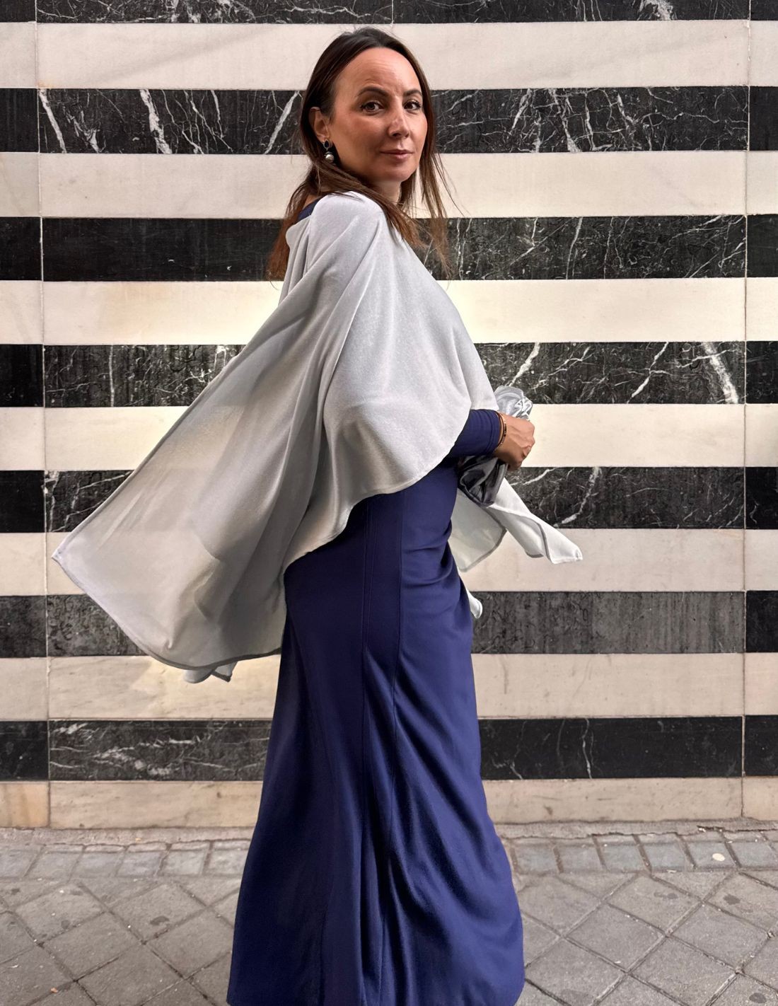 Si vous êtes à la recherche d'un accessoire spécial qui rehaussera votre look et que vous ne voudrez plus enlever, cette fine cape argentée sera votre alliée. Vous pouvez la combiner avec des centaines de looks, grâce à sa couleur et à son tissu, elle est super élégante et facile à combiner. Vous pouvez la porter pour un événement comme pour un look plus décontracté. Vous pouvez également le porter comme bon vous semble. Son tissu brillant ajoute une touche sophistiquée qui sera indispensable à votre look de fête.