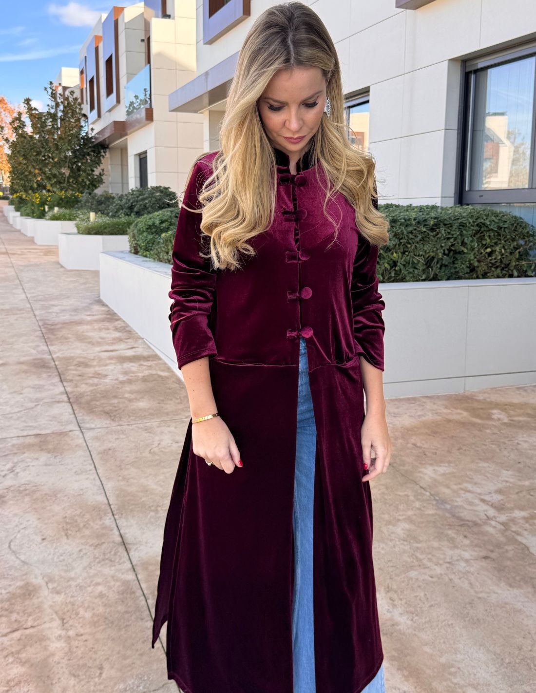 Un kimono en velours sera toujours un vêtement que vous ne voudrez pas retirer de votre garde-robe. Vous pouvez le porter pour des événements plus formels comme pour des occasions plus décontractées. Fabriqué dans un tissu de la plus haute qualité, il se ferme par un bouton sur le devant dans le même tissu. Il est également doté d'un col montant et d'épaulettes, un détail qui ajoute une touche élégante et sophistiquée. Ce kimono sera votre vêtement préféré et rehaussera n'importe quel look. Disponible dans d'autres couleurs.