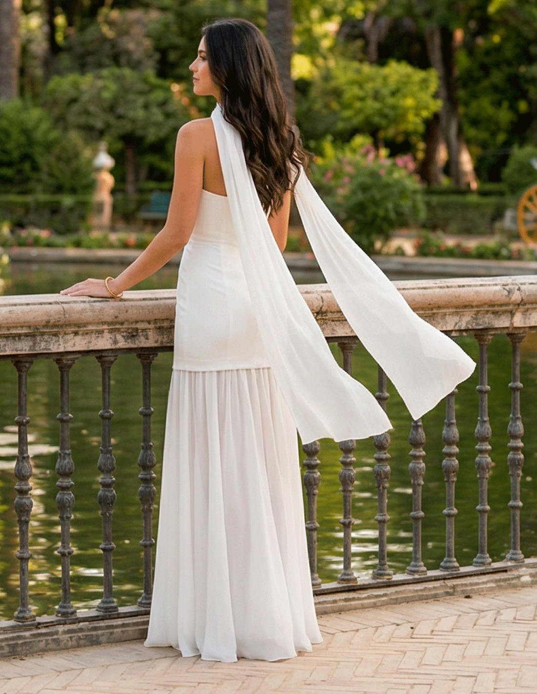 - Associez-la à des sandales ou des chaussures délicates dans les tons ivoire, nude ou argenté pour conserver l'harmonie de l'ensemble. Des voiles légers, des coiffes minimalistes ou des bijoux discrets mettront en valeur l'élégance naturelle du modèle. Idéale pour des coiffures soignées ou des chignons souples afin de renforcer son esthétique contemporaine.