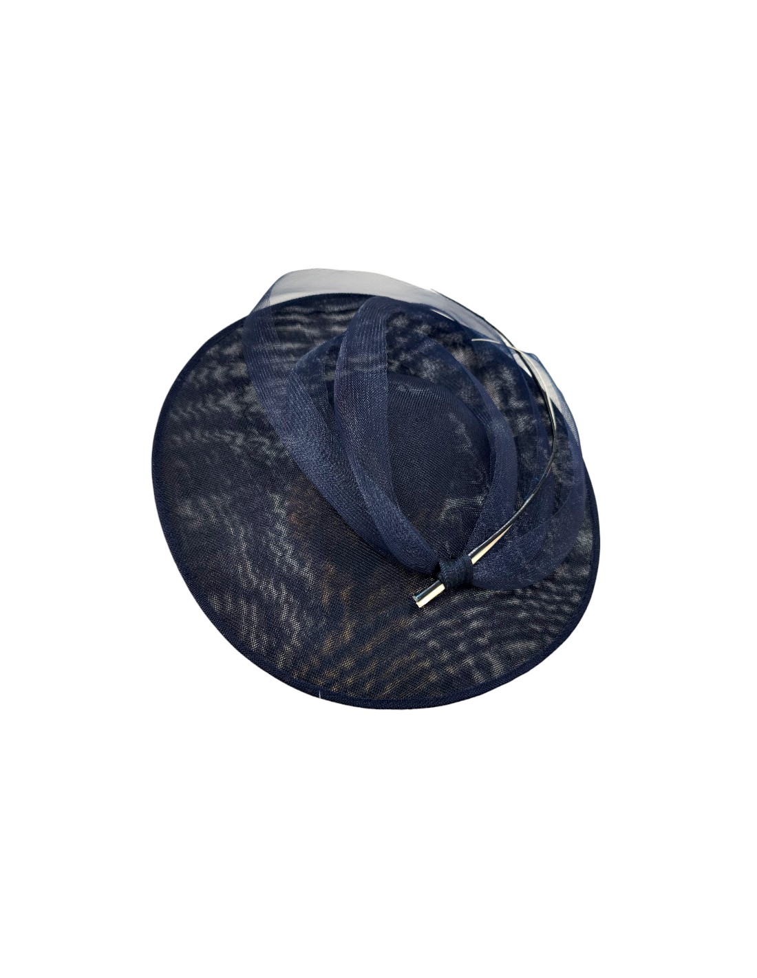 La pamela bleu marine est l'accessoire idéal pour compléter le look d'un invité avec élégance et distinction. Fabriquée à la main, elle se distingue par son design sophistiqué avec des détails de rachis et de crinière, créant un équilibre parfait entre volume, texture et style.