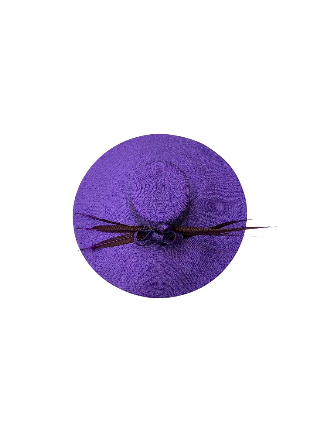 Rehaussez votre look avec notre chapeau d'invité à large bord violet, un accessoire idéal pour donner à votre look une touche de style et d'originalité. Conçu pour les événements de jour et les mariages matinaux, cet accessoire combine une structure traditionnelle avec un nœud et des plumes de faisan, ce qui le rend unique. Sa couleur violette vibrante est non seulement très tendance, mais elle donne aussi un éclat exceptionnel au visage, faisant de vous l'invitée parfaite.