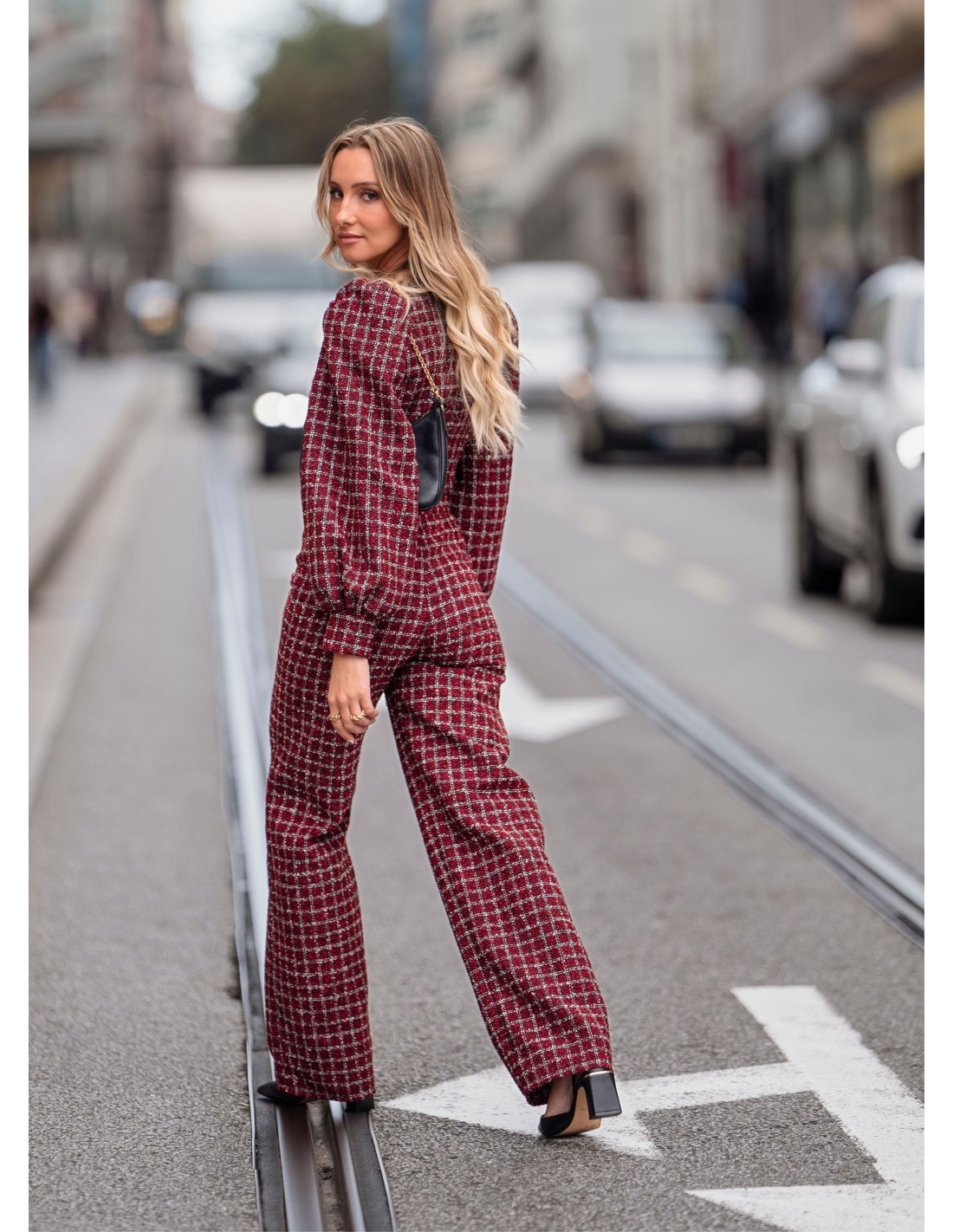 Si vous êtes à la recherche d'un vêtement polyvalent, pouvant être porté aussi bien lors d'événements que dans la vie de tous les jours, ce pantalon en tweed est le vêtement idéal. Pantalon long en tissu tweed dans les tons rouges, taille haute, avec fermeture éclair invisible sur le côté. Personnalisez la couleur. Confortable et élégant pour tout événement.