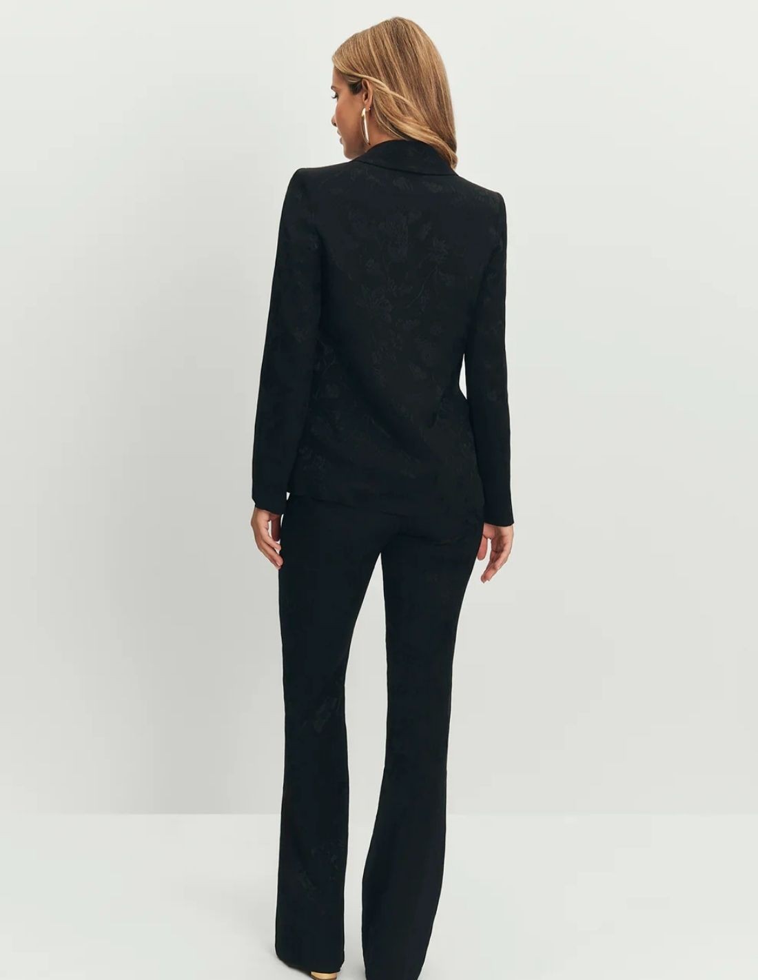 Pantalon jacquard noir, taille haute et silhouette évasée