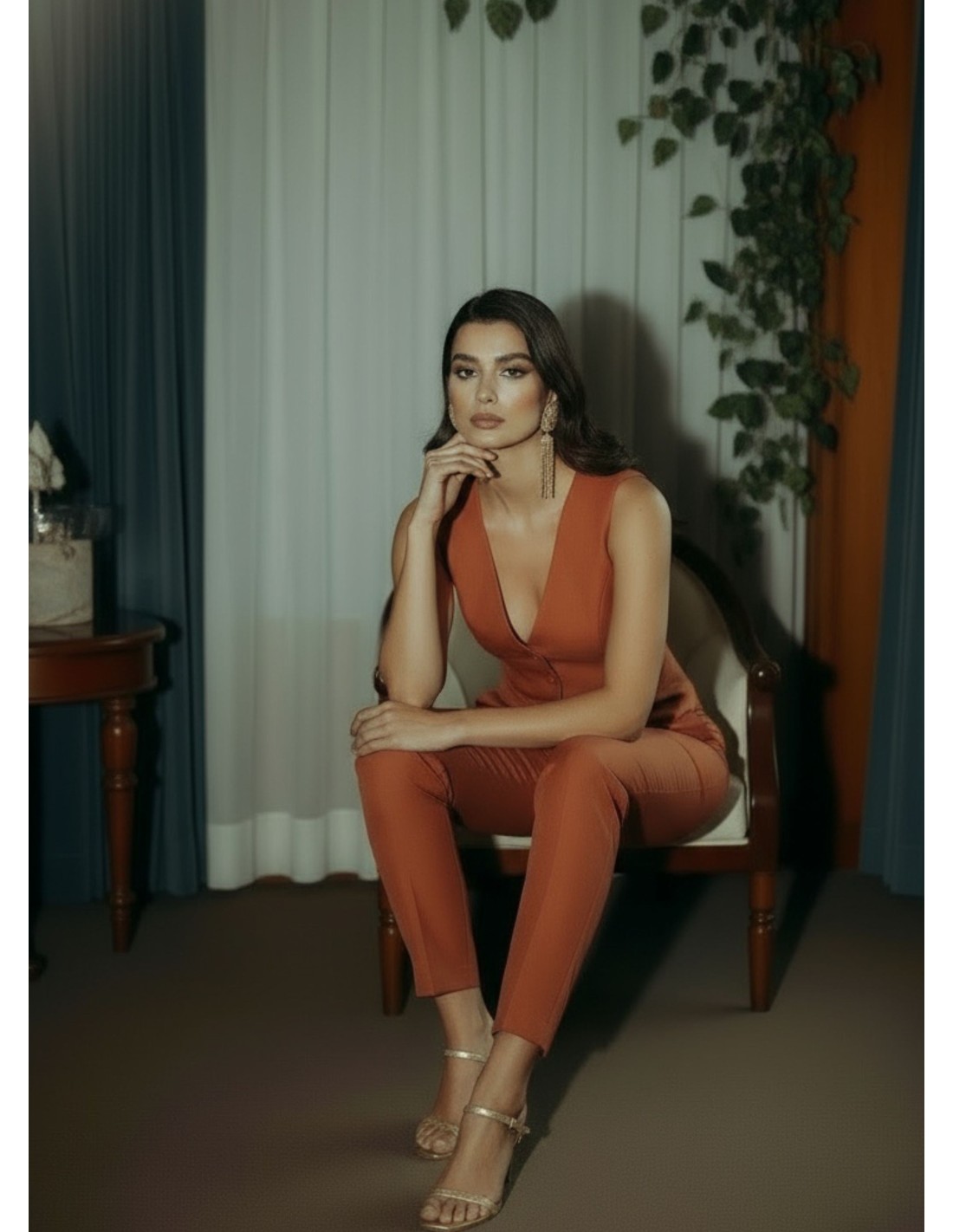 Ce pantalon taille haute en terre cuite est une pièce polyvalente, élégante et moderne, idéale pour celles qui souhaitent ajouter une touche de couleur sophistiquée à leur garde-robe. Son ton chaud et intemporel apporte de la personnalité sans perdre la neutralité nécessaire pour se combiner facilement avec des blouses, des tops ou des chemises dans des tons clairs, neutres ou terreux.