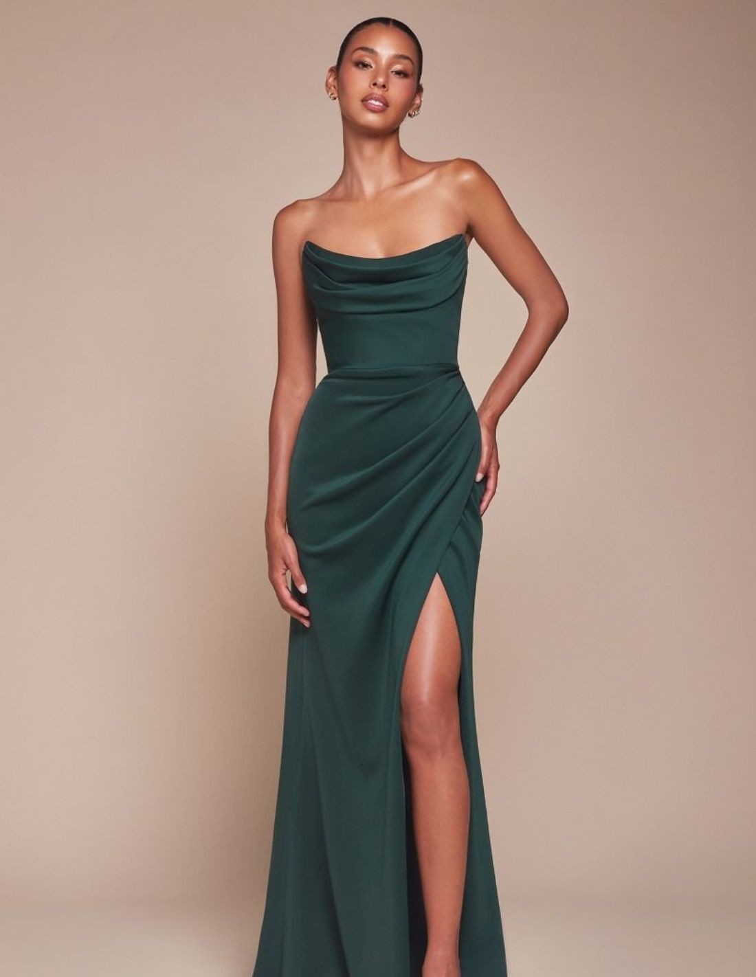 Robe longue de fête avec encolure sans bretelles et effet drapé
