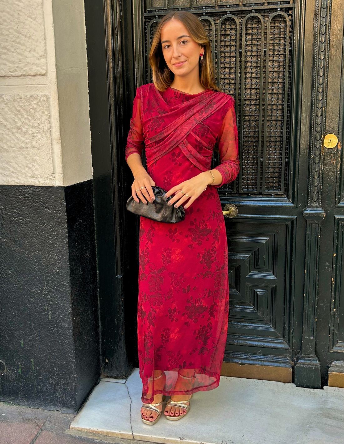 Si vous avez un événement à organiser cette saison et que vous êtes de celles qui misent sur l'élégance et le confort, cette robe midi est le look parfait pour vous. Une robe midi à l'imprimé floral dans les tons bordeaux, avec une encolure croisée qui met en valeur la poitrine et des manches longues. Idéale si vous cherchez quelque chose de simple pour une occasion spéciale ou même si vous cherchez un look décontracté.