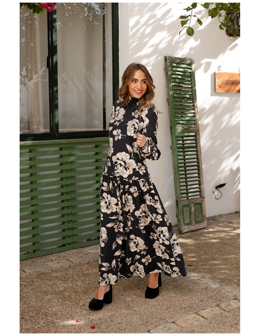 Robe midi à imprimé floral pour les événements de l'automne et de l'hiver