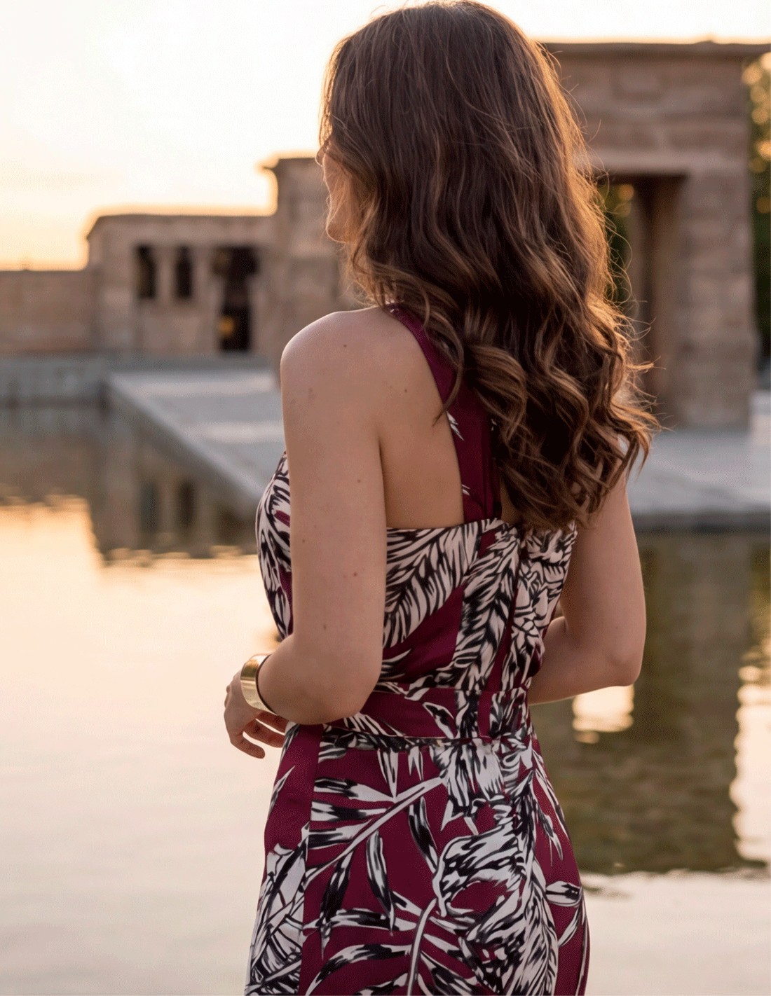 Cette robe dos nu marron est le choix idéal pour les personnes qui recherchent un look élégant et sophistiqué avec de la personnalité. Son design associe une encolure licou flatteuse à un tissu imprimé dans des tons profonds qui ajoutent de l'intensité et du style.