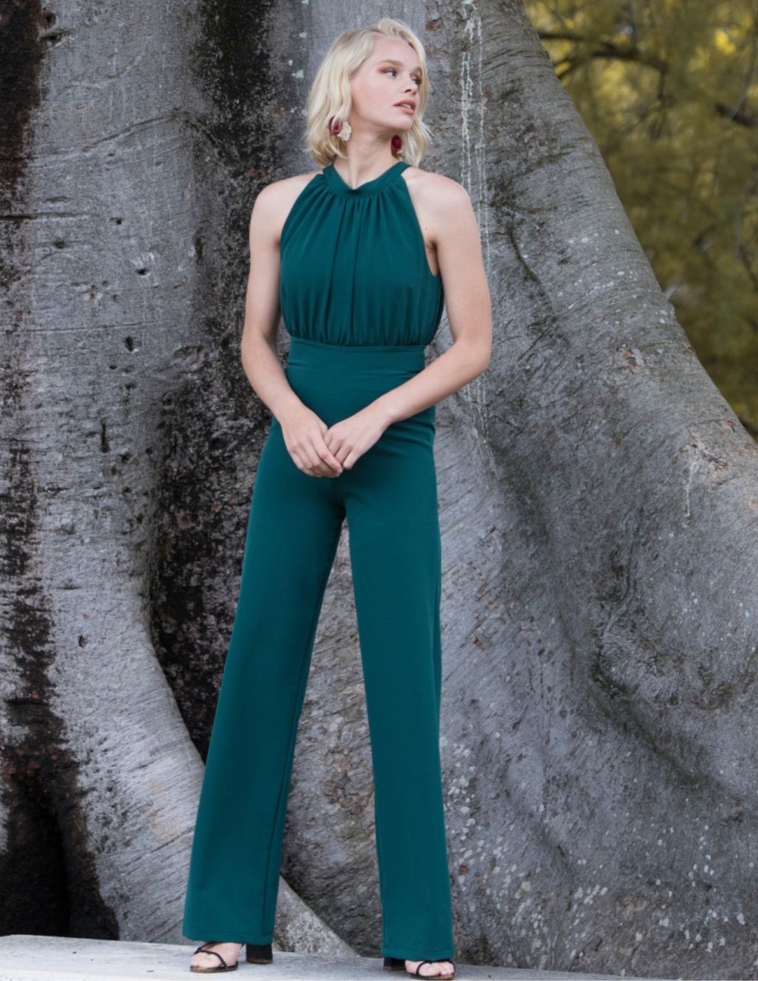 Combinaison de fête verte avec encolure licou drapée
