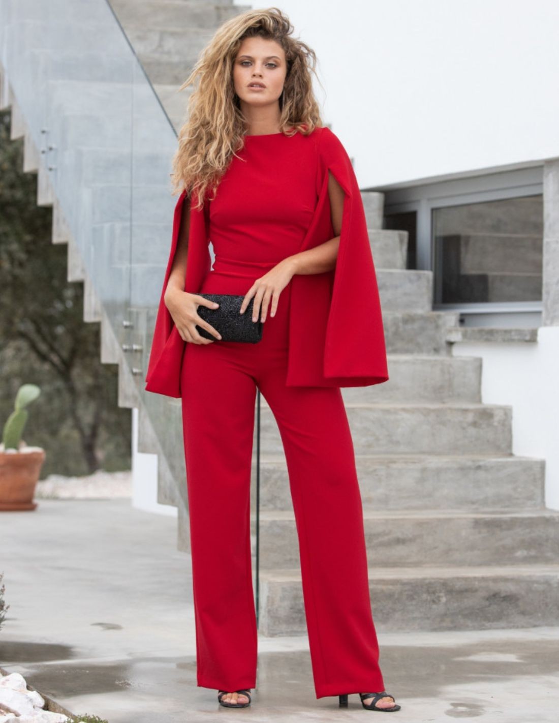 Cette combinaison de soirée rouge sophistiquée à manches cape est la définition même de l'élégance et de la féminité. Son design fluide et structuré associe parfaitement une touche de romantisme à une touche de modernité, ce qui en fait le choix idéal pour les événements spéciaux. Le dos ouvert ajoute une touche de sophistication supplémentaire et se ferme délicatement par un bouton en haut, tandis que le pantalon se ferme par un zip invisible pour une finition impeccable.
