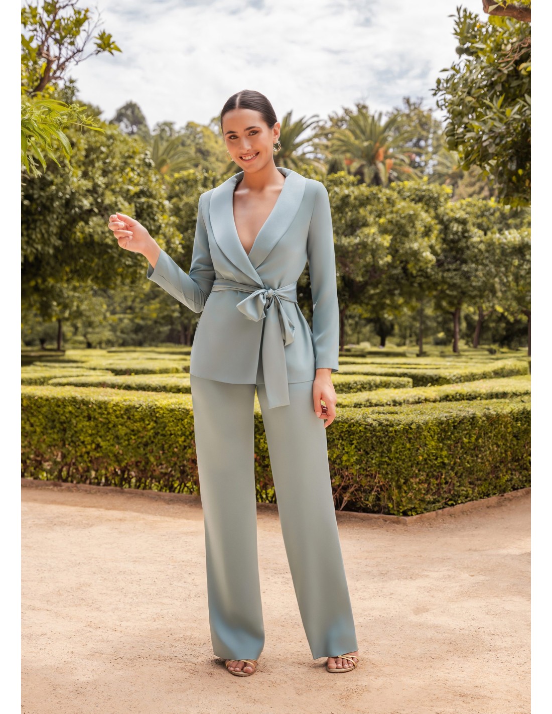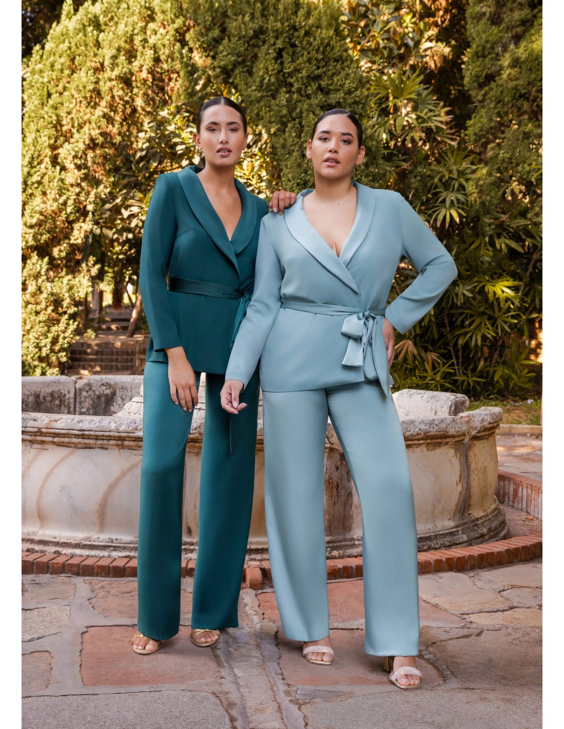 Vos événements d'automne méritent un look spécial qui vous fera briller et vous permettra d'être l'invitée parfaite. Cette tenue d'invité se compose d'une veste à encolure en V et laçage et d'un pantalon long large. Elégante et idéale pour éblouir aussi bien lors de vos événements formels que lors de vos occasions plus décontractées, car vous pouvez la porter ensemble mais aussi séparément.