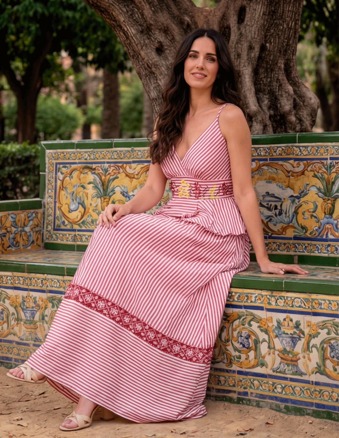 Élégant ensemble rayé rouge pour les invités de mariage en journée et les événements estivaux en Espagne
